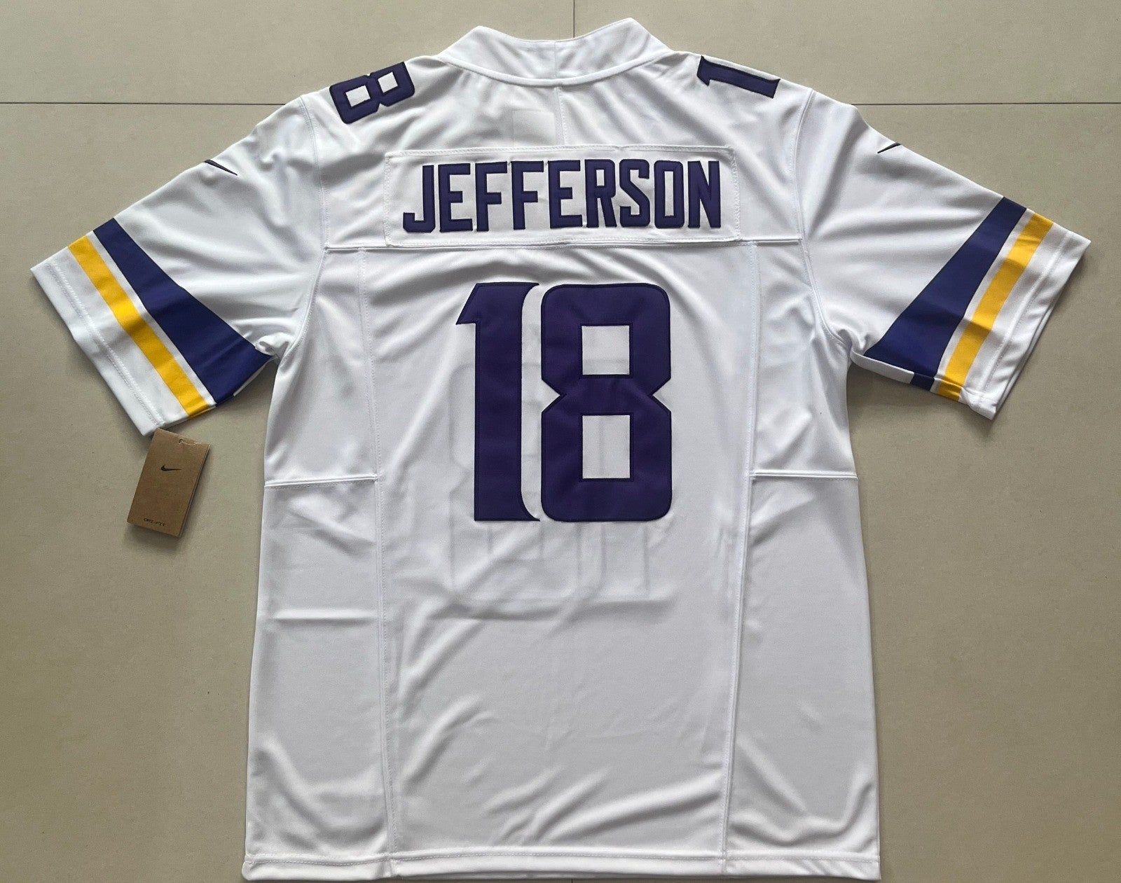 Justin Jefferson's iconic #18 Minnesota Vikings jersey captures the elite wide receiver's dynamic presence on the field. This authentic stitched jersey features premium construction with durable embroidery that withstands repeated wear and washing. Available in large and extra-large sizes, it delivers the official look and feel of game-day apparel. Perfect for dedicated fans who demand quality and authenticity, this jersey showcases Jefferson's impact as one of the NFL's premier receiving talents. Display your support with confidence in a piece built to last.